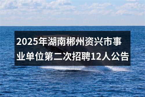 计划招聘工作人员12名。具体招聘单位、岗位、计划数及资格条件等详见《2025年资兴市事业单位第二次公开招聘工作人员计划岗位信息表》(附件1),以下简称《岗位信息表》。相关事宜可通过以下指定官方网站查阅:郴州市人力资源和社会保障局门户网站(http://czrsj.czs.gov.cn)、资兴市人民政府门户网站(http://www.zixing.gov.cn)。