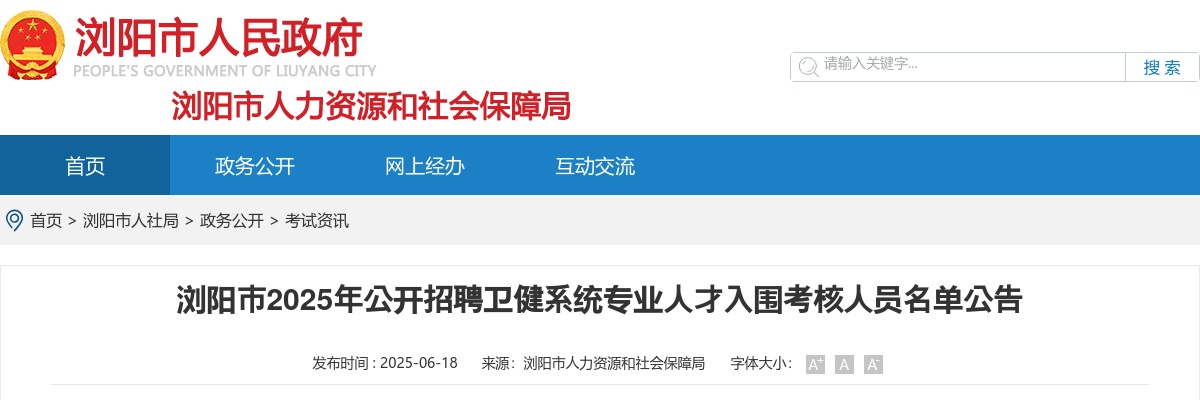 原标题:浏阳市2025年公开招聘卫健系统专业人才入围考核人员名单公告