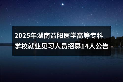 声明:专注 2025年湖南益阳医学高等专科学校就业见习人员招募14人公告 相关岗位分析;专业指导面试技巧;保障就业成功概率。