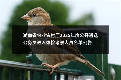 原标题:湖南省农业农村厅2025年度公开遴选公务员进入体检考察人员名单公告