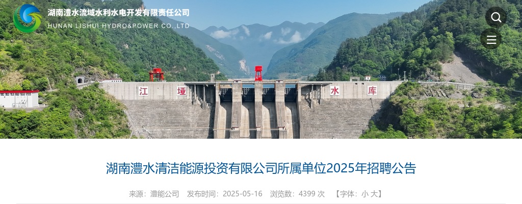 原标题:湖南澧水清洁能源投资有限公司所属单位2025年招聘公告