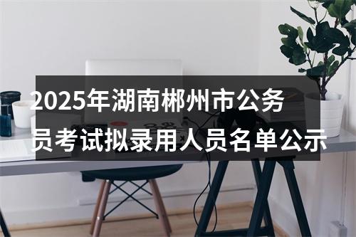 根据《湖南省2025年考试录用公务员公告》有关规定,经报名、笔试、资格审查、面试、体检、考察等程序,现将郴州市2025年考试录用公务员拟录用人员名单进行公示(详见附件)。