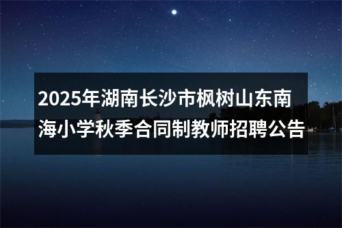 声明:专注 2025年湖南长沙市枫树山东南海小学秋季合同制教师招聘公告 相关岗位分析;专业指导面试技巧;保障就业成功概率。