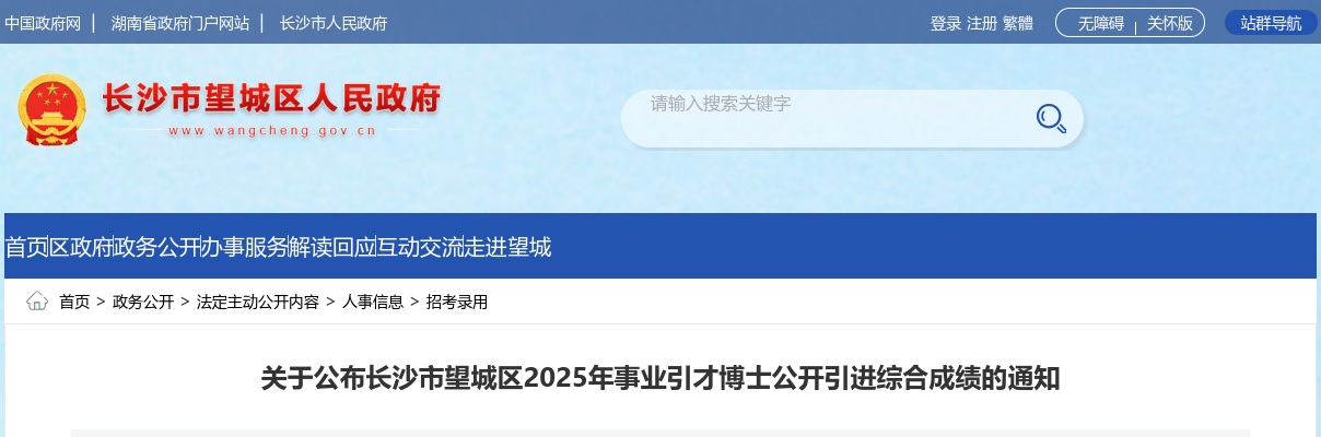 原标题:关于公布长沙市望城区2025年事业引才博士公开引进综合成绩的通知