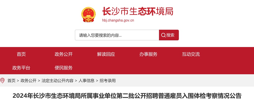 原标题:2024年长沙市生态环境局所属事业单位第二批公开招聘普通雇员入围体检考察情况公告