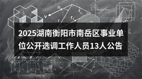 声明:专注 2025湖南衡阳市南岳区事业单位公开选调工作人员13人公告 相关岗位分析;专业指导面试技巧;保障就业成功概率。