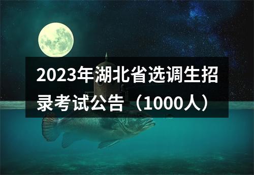 2023年全省计划招录选调生1000名。其中,面向国内“双一流”建设高校2023届毕业生定向选调150名;面向国内第二批本科及以上高校2023届毕业生、省内服务基层项目人员等集中选调850名。具体情况详见《2023年湖北省选调生招录职位计划表》。