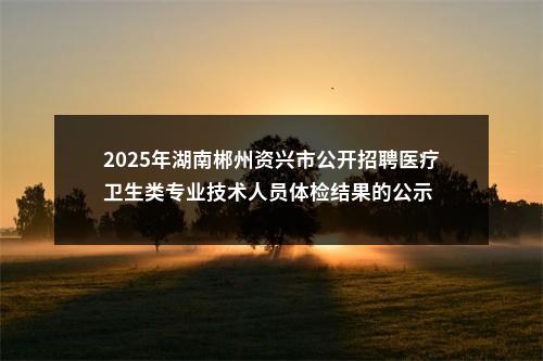 原标题:关于2025年资兴市公开招聘医疗卫生类专业技术人员体检结果的公示
