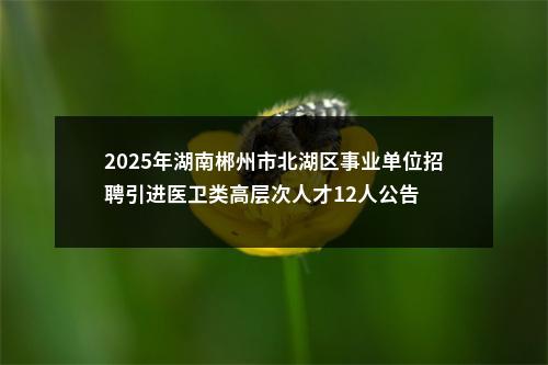 原标题:2025年郴州市北湖区事业单位公开招聘引进医卫类高层次人才公告