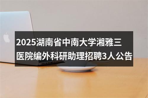 【2025湖南省中南大学湘雅三医院编外科研助理招聘3人公告】相关岗位: