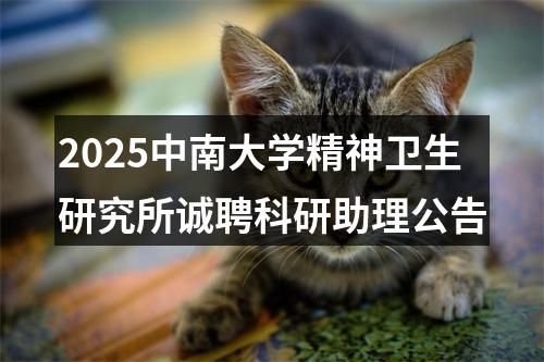 【2025中南大学精神卫生研究所诚聘科研助理公告】相关岗位:
